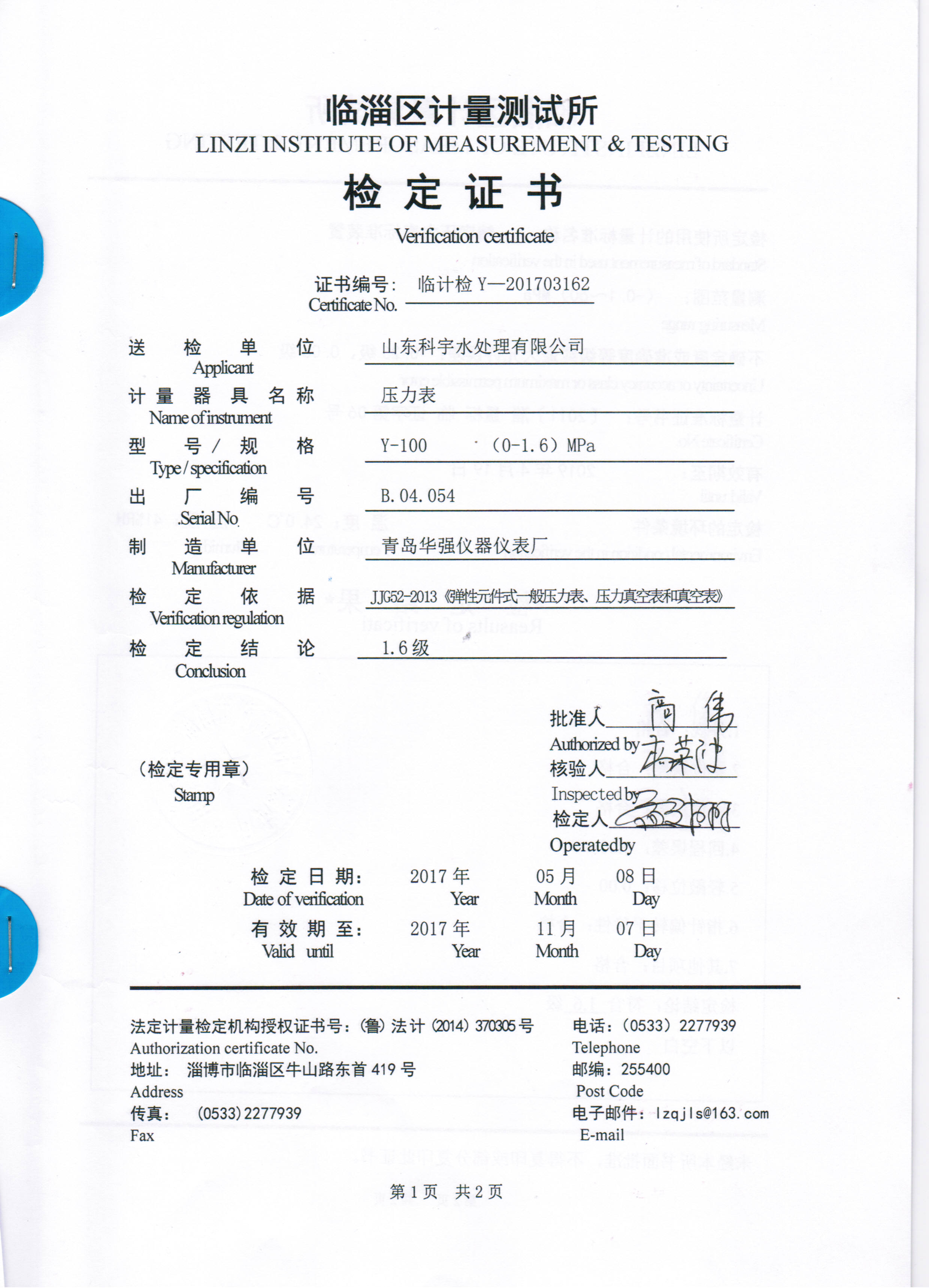 在新的历史时期,科宇水处理保证严格按照ISO9001质量管理体系、ISO14001环境管理体系、OHSAS18001职业健康安全管理体系要求,严格程序,科学生产,标准管理。做到产品优异、诚实守信、服务一流。