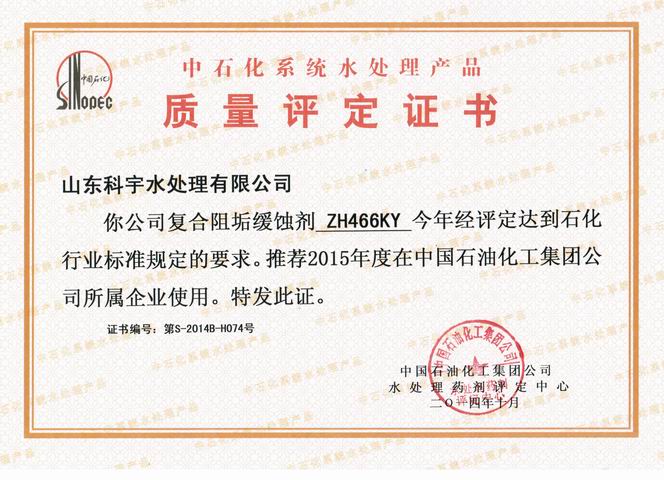我公司阻垢缓蚀剂和杀菌剂,经中国石油化工集团公司评水处理药剂评定中心评定达到石化行业标准规定的要求,推荐