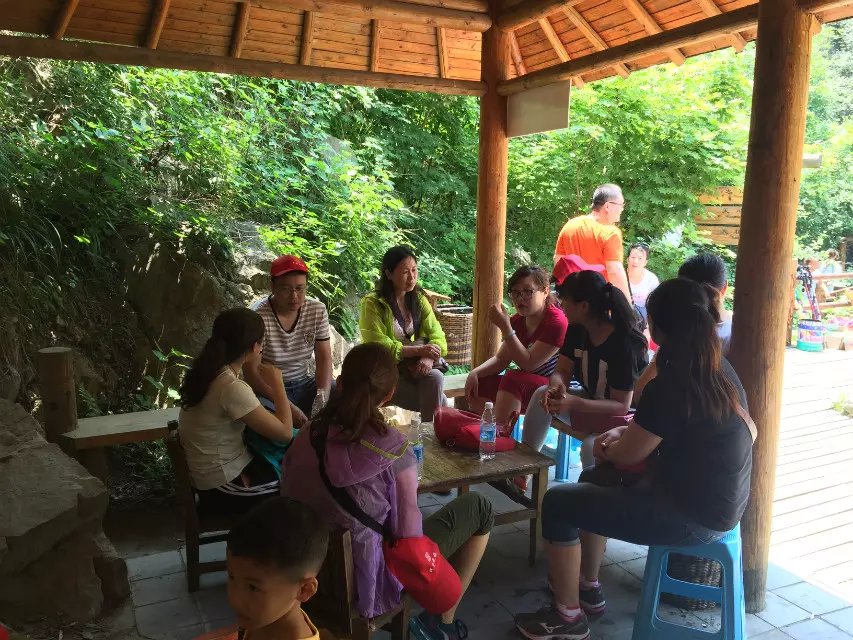 我们在半山腰叫滴水崖的饭店吃完饭,便一鼓作气向最高峰前进了,登山峰顶,俯瞰满山郁郁葱葱的草木充满生机,不禁呐喊“我来啦”。